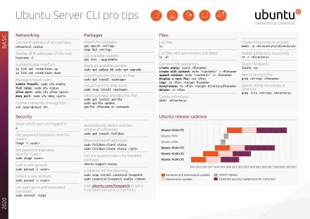 获取“Ubuntu Server 2020 CLI 专业提示”参考手册来了解如何更有效地使用命令行,以及开始从基础文件管理到Kubernetes和OpenStack的开发运维。
